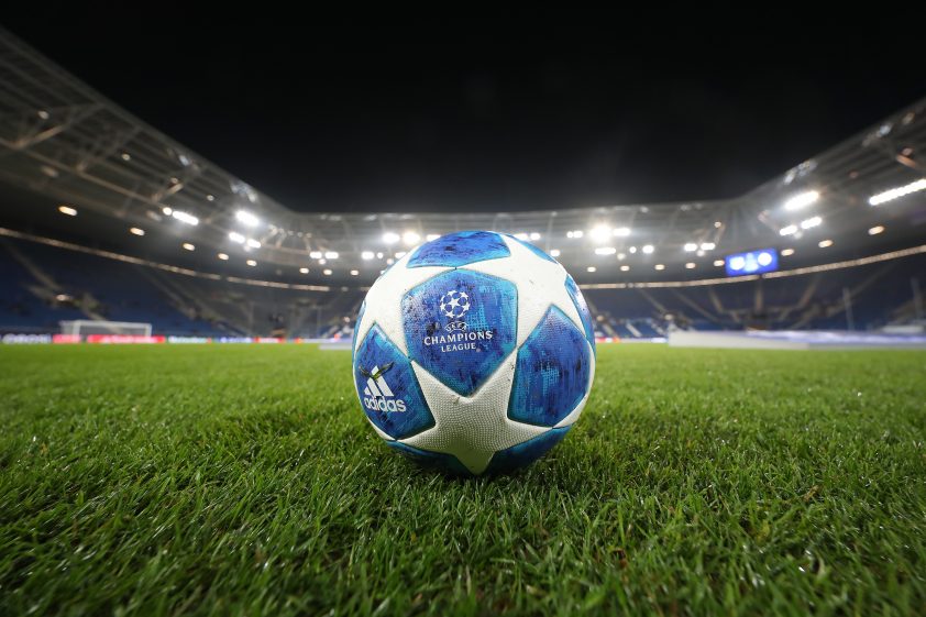 SINSHEIM, GERMANY - NOVEMBER 27: A general view of a practice ball inside the stadium prior to the UEFA Champions League Group F match between TSG 1899 Hoffenheim and FC Shakhtar Donetsk at Wirsol Rhein-Neckar-Arena on November 27, 2018 in Sinsheim, Germany. (Photo by Christian Kaspar-Bartke/Bongarts/Getty Images)