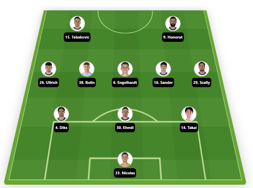 Rocco Reitz effectuera son retour après suspension. Haris Tabaković reste l’arme offensive principale, avec une tendance marquée à faire la différence en seconde période.