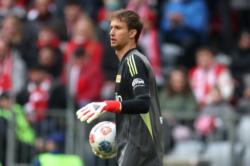 MUNICH, GERMANY - MARCH 21: Frederik Rönnow of Union Berlin looks on during the Bundesliga match between FC Bayern München and 1. FC Union Berlin at Allianz Arena on March 21, 2026 in Munich, Germany. (Photo by Alexander Hassenstein/Getty Images)