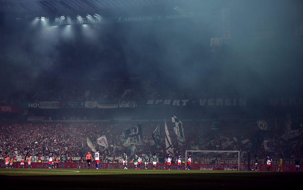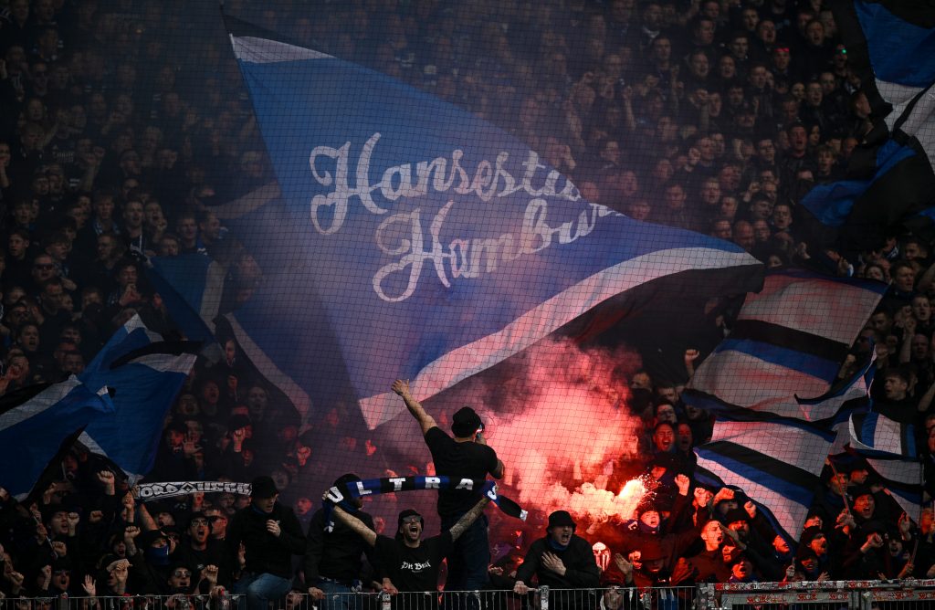 Le climat est devenu délétère dès l’avant-match. Environ une heure avant le coup d’envoi, alors que les tribunes commençaient à peine à se remplir, des premières fusées éclairantes ont été tirées depuis le parcage des supporters de Hamburg. Plusieurs projectiles ont atterri sur la pelouse, dont un sur les panneaux publicitaires juste derrière le but opposé, frôlant de peu les supporters locaux.