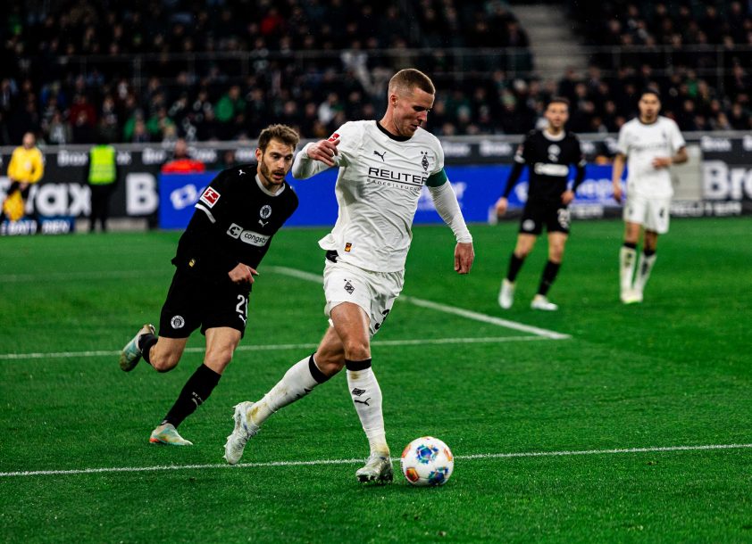 Après la pause, Sankt Pauli a tenté de prendre davantage le contrôle du ballon. Les hommes d’Alexander Blessin ont bien combiné dans l’entrejeu, mais ils ont buté sur une défense de Gladbach très compacte organisée en 5-4-1.
