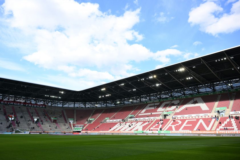 AUGSBURG, GERMANY - APRIL 06: General view inside the stadium prior to the Bundesliga match between FC Augsburg and 1. FSV Mainz 05 at WWK-Arena on April 06, 2022 in Augsburg, Germany. (Photo by Sebastian Widmann/Getty Images)