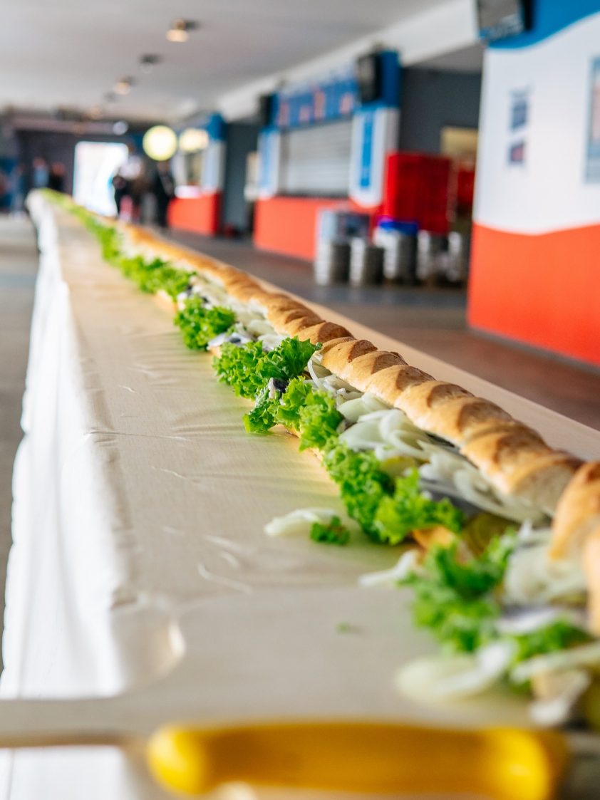 Au-delà de l’aspect spectaculaire, l’opération s’inscrivait dans une démarche plus large. Une fois le record validé, le Fischbrötchen a été découpé et vendu aux supporters, à l’intérieur comme à l’extérieur du stade.