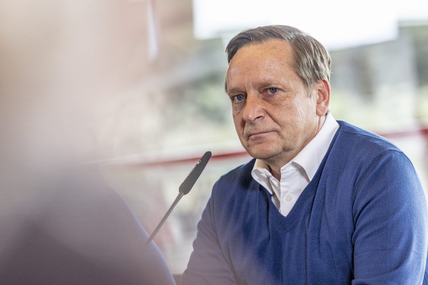 BERLIN, GERMANY - APRIL 13: Horst Heldt, Managing Director of Union Berlin speaks at the Press Conference of 1. FC Union Berlin on April 13, 2026 in Berlin, Germany. Union Berlin has appointed Marie-Louise Eta as the first female head coach in the men’s Bundesliga. (Photo by Maja Hitij/Getty Images)