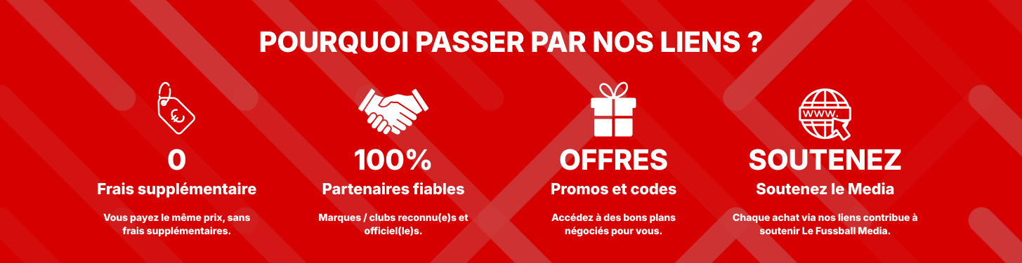 Nous continuons de développer nos partenariats. Intéressé pour collaborer ? Écrivez-nous à contact@lefussball.com