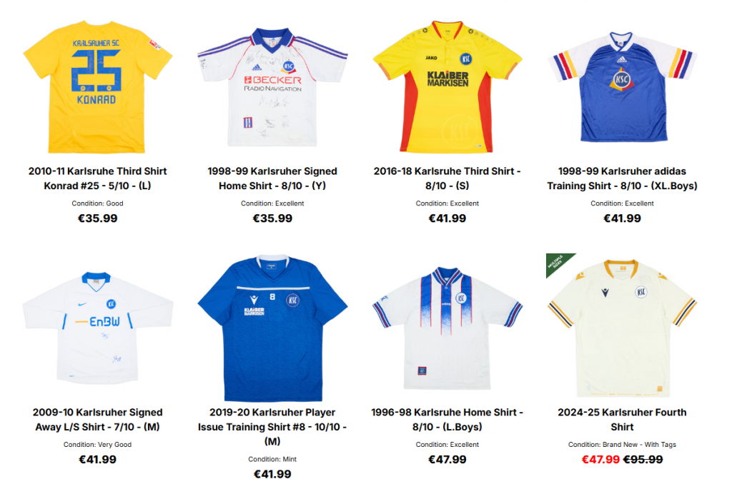 Envie d’un maillot du Karlsruher SC pour accompagner l’actualité du club ? Que vous soyez nostalgique des grandes années en Bundesliga ou attaché aux saisons plus récentes, vous pouvez retrouver des maillots 100 % authentiques du KSC, toutes époques confondues, à des prix attractifs grâce à notre partenaire Classic Football Shirts. Une belle occasion d’ajouter une pièce originale à votre collection ou de représenter le KSC avec un modèle vintage ou plus contemporain en cliquant ici !