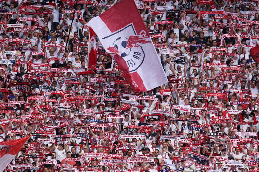 LEIPZIG, GERMANY - MAY 11: Fans of RB Leipzig show their support, waving flags and holding scarves aloft prior to the Bundesliga match between RB Leipzig and SV Werder Bremen at Red Bull Arena on May 11, 2024 in Leipzig, Germany. (Photo by Maja Hitij/Getty Images)